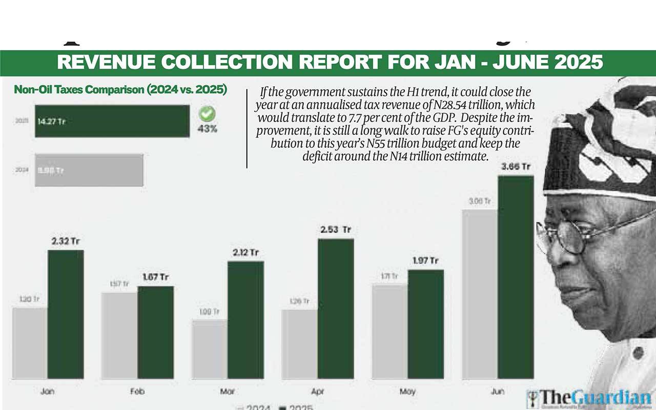 Efforts to enhance Nigeria’s fiscal place and cut back the focus danger of oil sale dependence could also be getting promising traction as the federal government grew its composite tax income by 43 per cent within the first half (H1) of the yr.