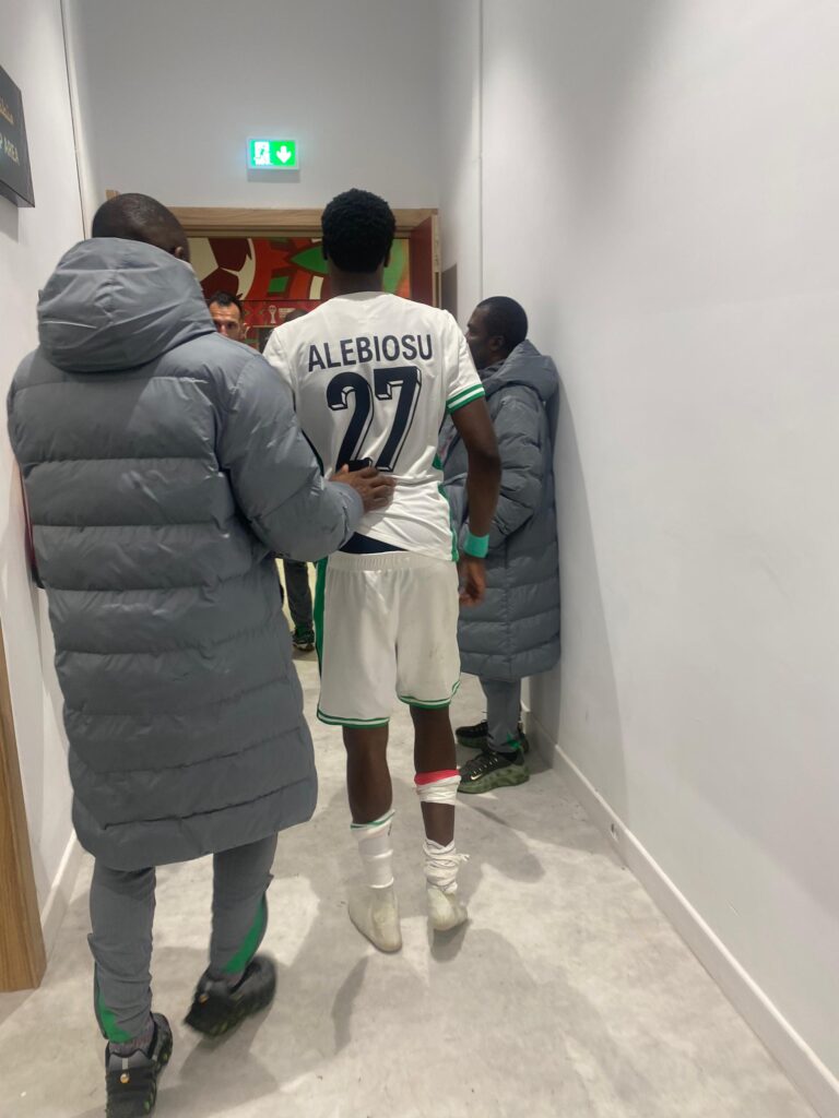 Alebiosu, who made his maiden look for the Tremendous Eagles within the recreation, sustained a deep minimize on his proper leg.