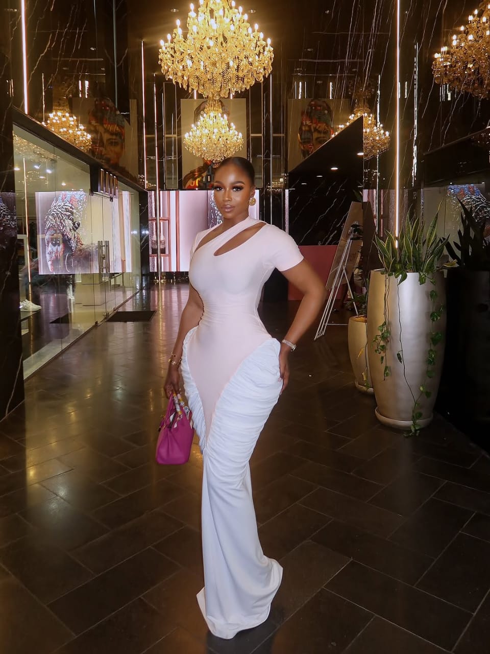This look introduces attract with intention. A bodycon silhouette creates a modern, sculpted form, whereas a neckline cutout provides simply sufficient intrigue to maintain issues attention-grabbing. Gathered cloth at every hip enhances the curves, making the form really feel deliberate reasonably than unintended.