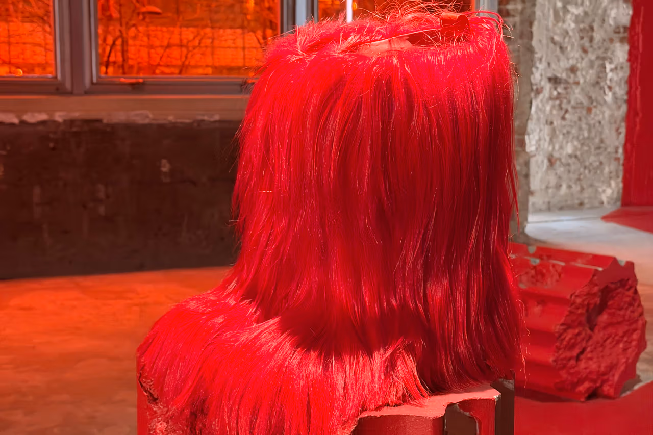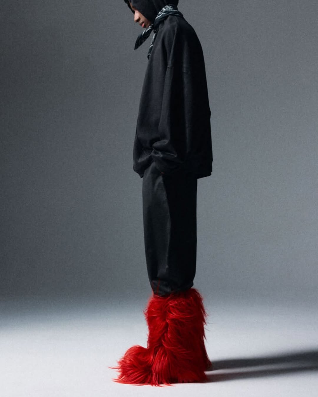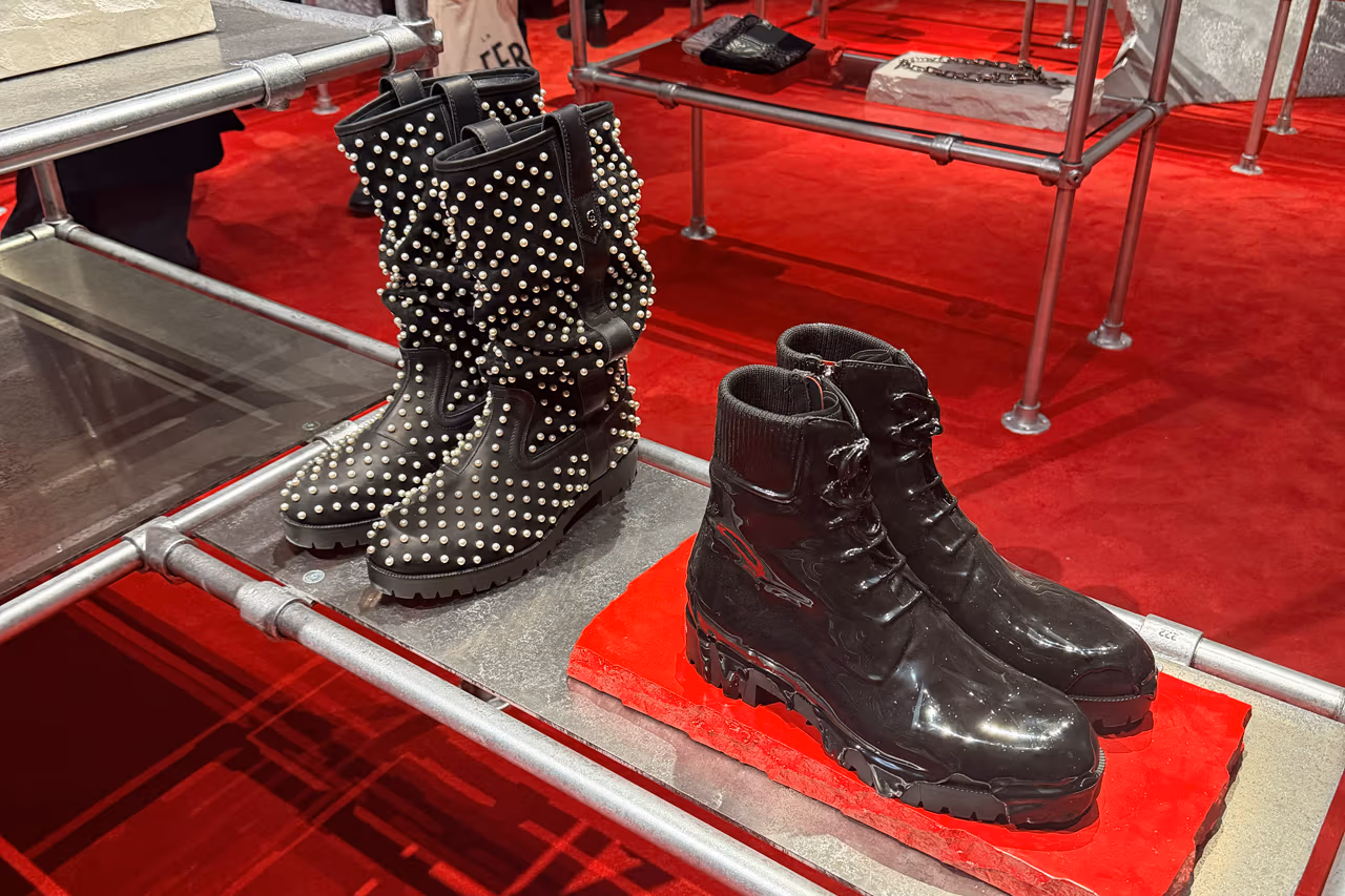 Among the many most talked-about items had been extra-tall silver cowboy boots extending far past commonplace proportions, in addition to a boot solely lined in lengthy crimson hair, prioritizing texture and motion over typical wearability. Tactical-inspired boots with astronaut-like references additional strengthened the strain between historic labor and futuristic imagery.