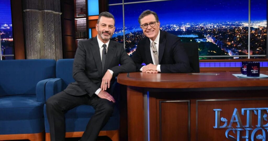 Late-night hosts Colbert, Kimmel seem as friends on one another’s reveals – CBS Information