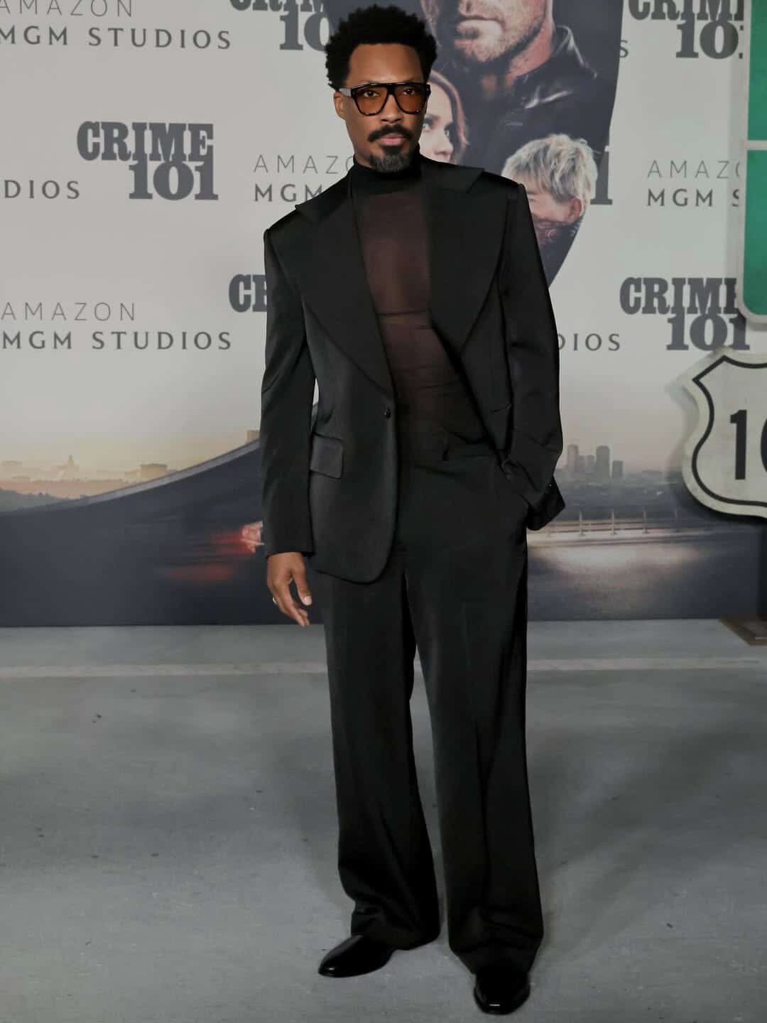 On the Crime 101 premiere, Corey Hawkins delivered one of many week’s most spectacular style moments in a sharply tailor-made DZOJCHEN ensemble. The black swimsuit featured sturdy shoulders and fluid, elongated traces, making a statuesque silhouette we couldn’t ignore. Reasonably than choosing a standard shirt, Hawkins layered the tailoring over a sheer high-neck prime, a delicate however impactful alternative that launched texture. Smooth Doucal’s sneakers grounded the look with understated polish, whereas David Yurman jewelry added restrained metallic accents that elevated fairly than distracted. L’Écurie Paris glasses accomplished the ensemble, lending mental cool and framing the aesthetic with intention.