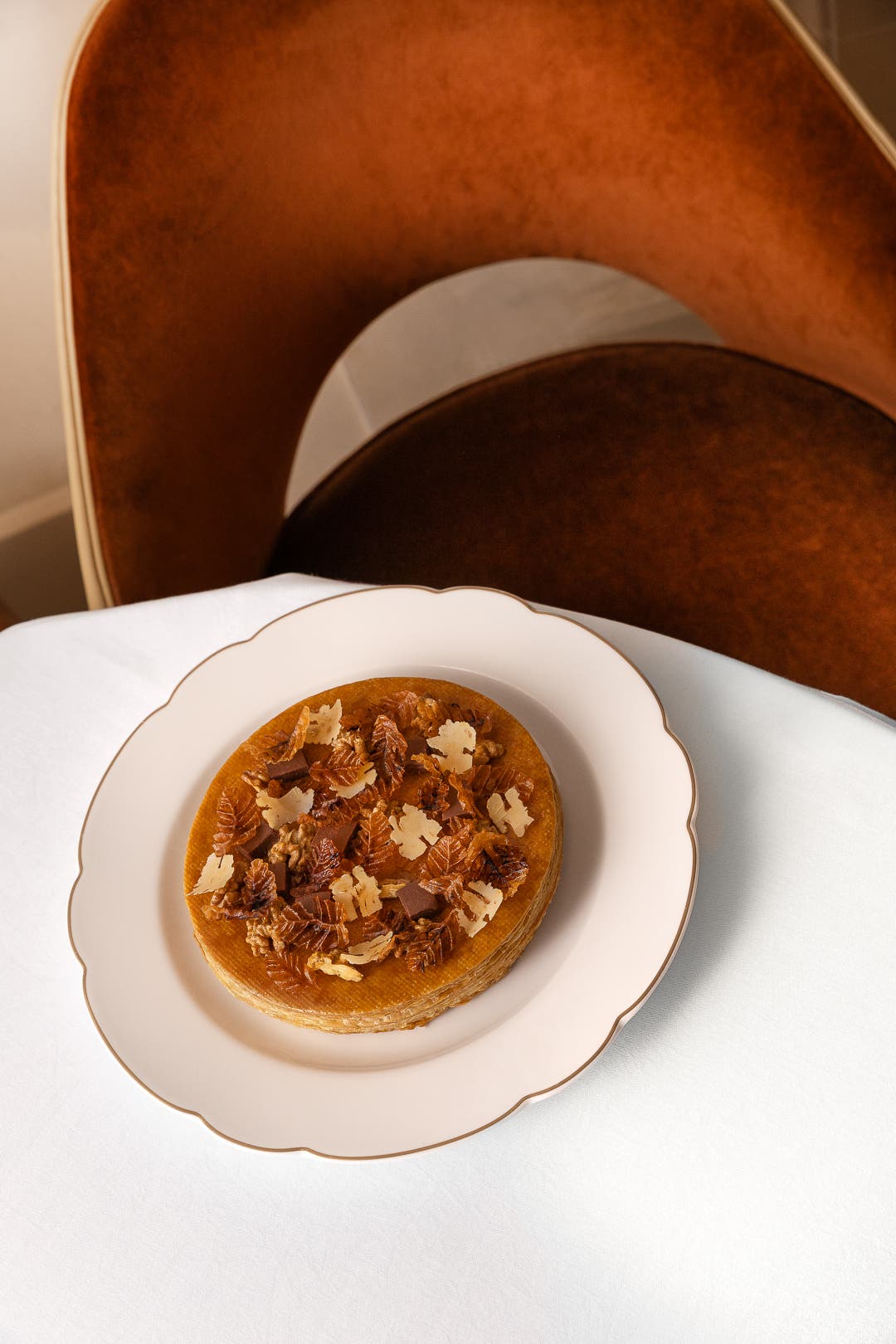 Une brioche feuilletée qui déborde de frangipane et de pâte à tartiner, toutes deux parfumées au chaï, c’est la très belle innovation du Burgundy Paris par le chef pâtissier Léandre Vivier. (58 euros)