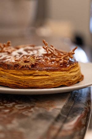 Nina Metayer joue encore une fois de son pouvoir d’orfèvre avec sa galette déjà couronnée au feuilletage à réveiller les morts (de bonheur). (69 euros)