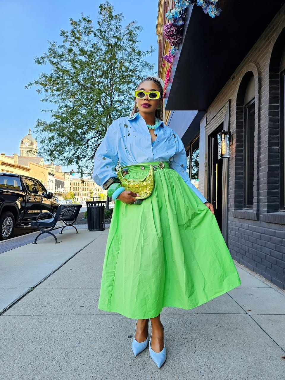 For many who love to face out, colour blocking is the place blue sneakers actually shine. Assume vibrant blue tops paired with lime inexperienced skirts, wealthy reds, or surprising colour combos. Your blue sneakers anchor the look whereas nonetheless contributing to the drama.