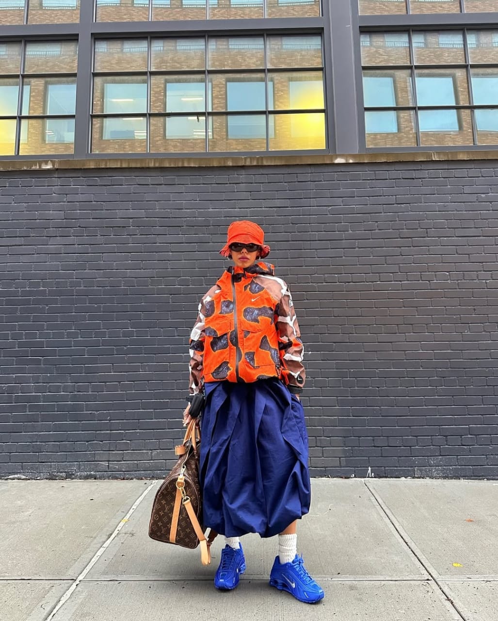 Whether or not worn with sweatpants or tailor-made trousers, the distinction between relaxed footwear and daring outerwear creates visible curiosity. Amid robust prints, blue sneakers act as a grounding aspect. End with equipment like an announcement bag or a hat, and also you’ve mastered cozy dressing with character.