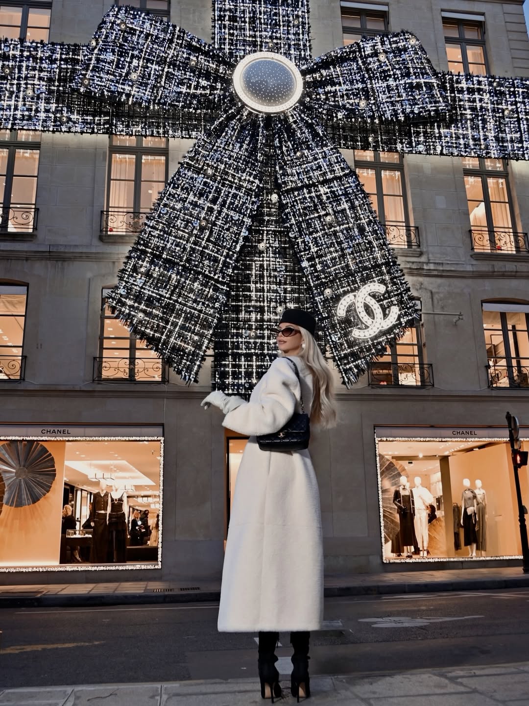 woman wearing white pants with black boots and coat