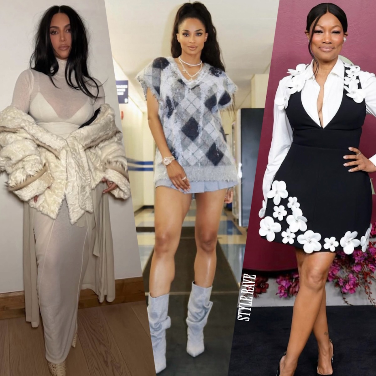 Ciara leaned into suave layering in an R13 argyle-knit vest worn over a pale blue underlayer, paired with slouchy pointed-toe boots. Frayed edges and paint-splatter particulars gave the impression an undone really feel, balancing texture with proportion.