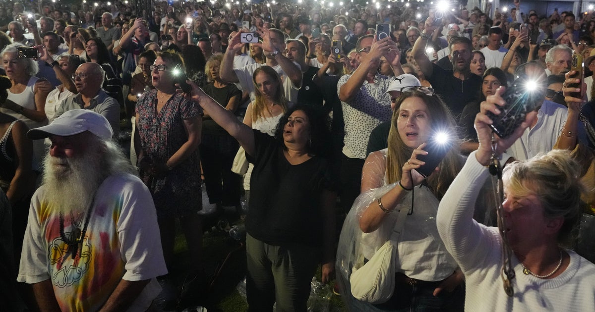 Past the well-known seaside, folks round Australia united with Sydney’s stricken Jewish group by lighting candles and observing one minute of silence at their houses at 6:47 p.m. to recollect the second the bloodbath unfolded. Tv and radio networks throughout Australia additionally fell silent.