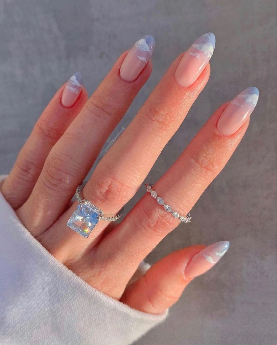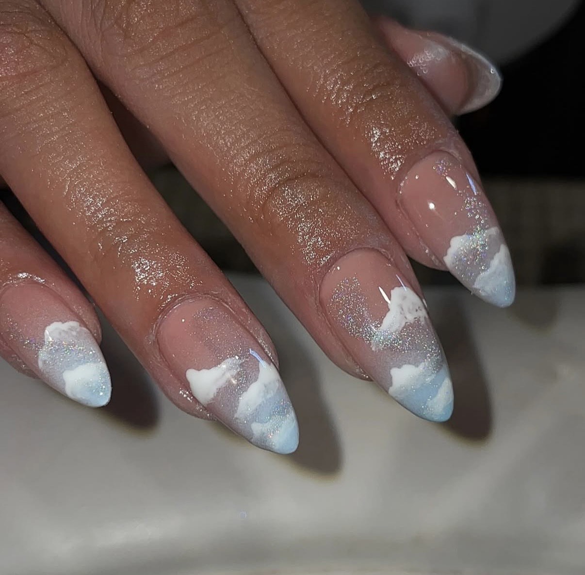 In contrast, the 2026 evolution introduces depth and softness impressed by winter gentle. Nail artists at the moment are working with layered pigments, blurred edges, and creamy undertones reasonably than stark distinction. Inside this replace, cloud nail design shifts away from literal cloud imagery and towards ambiance, drawing inspiration from overcast mornings, muted daylight, and softened whites that really feel intentional reasonably than ornamental.