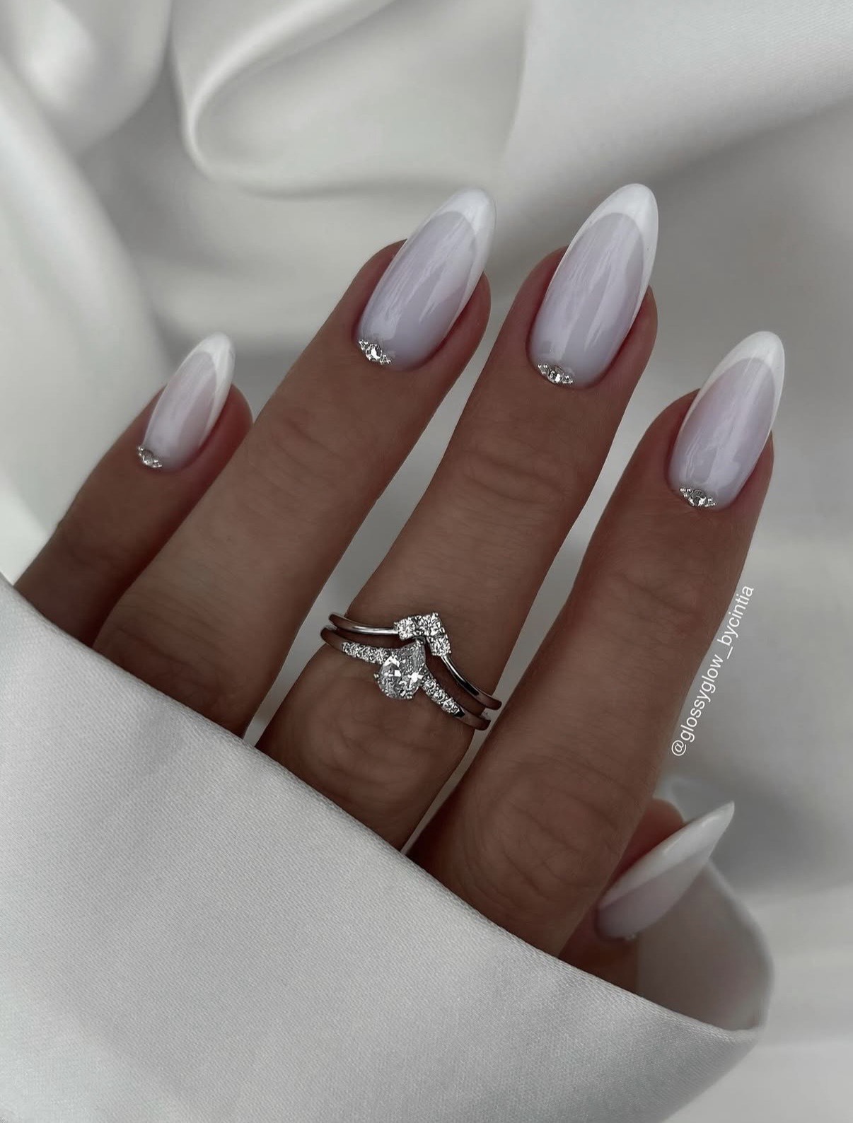 - Minimal cloud accents over milky nude bases for on a regular basis put on.